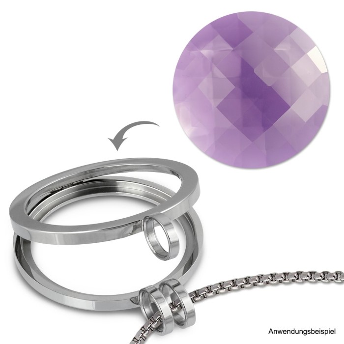 Der Acryl Coin Facettenschliff in der Farbe lila ist trendig und sehr hochwertig verarbeitet. Der Coin hat einen Durchmesser von 30mm und wird in eine Coinsfassung eingelegt. Der Coin ist ca. 1mm am Rand und 5mm in der Mitte dick. Man muss ihn nur noch in eine Ketten- oder Armbandfassung legen und schon ist das individuelle Schmuckstück fertig.