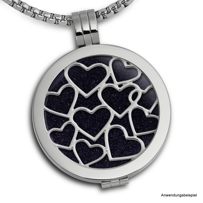 Der Edelstahl-Coin Herzen in der Farbe silber (edelstahlfarben) ist trendig und sehr hochwertig verarbeitet. Der Coin hat einen Durchmesser von 30mm und wird in eine Coinsfassung eingelegt. Der Coin ist ca 1mm dick und kann mit allen anderen Coins in 1mm Stärke kombiniert und als Doppelpack getragen werden. Es entsteht ein toller Effekt, da man verschiede Farben und Materialien unterlegen kann, und diese dann durchscheinen. Man muss nur noch eine Kette durch fädeln und schon ist das individuelle Schmuckstück fertig.