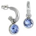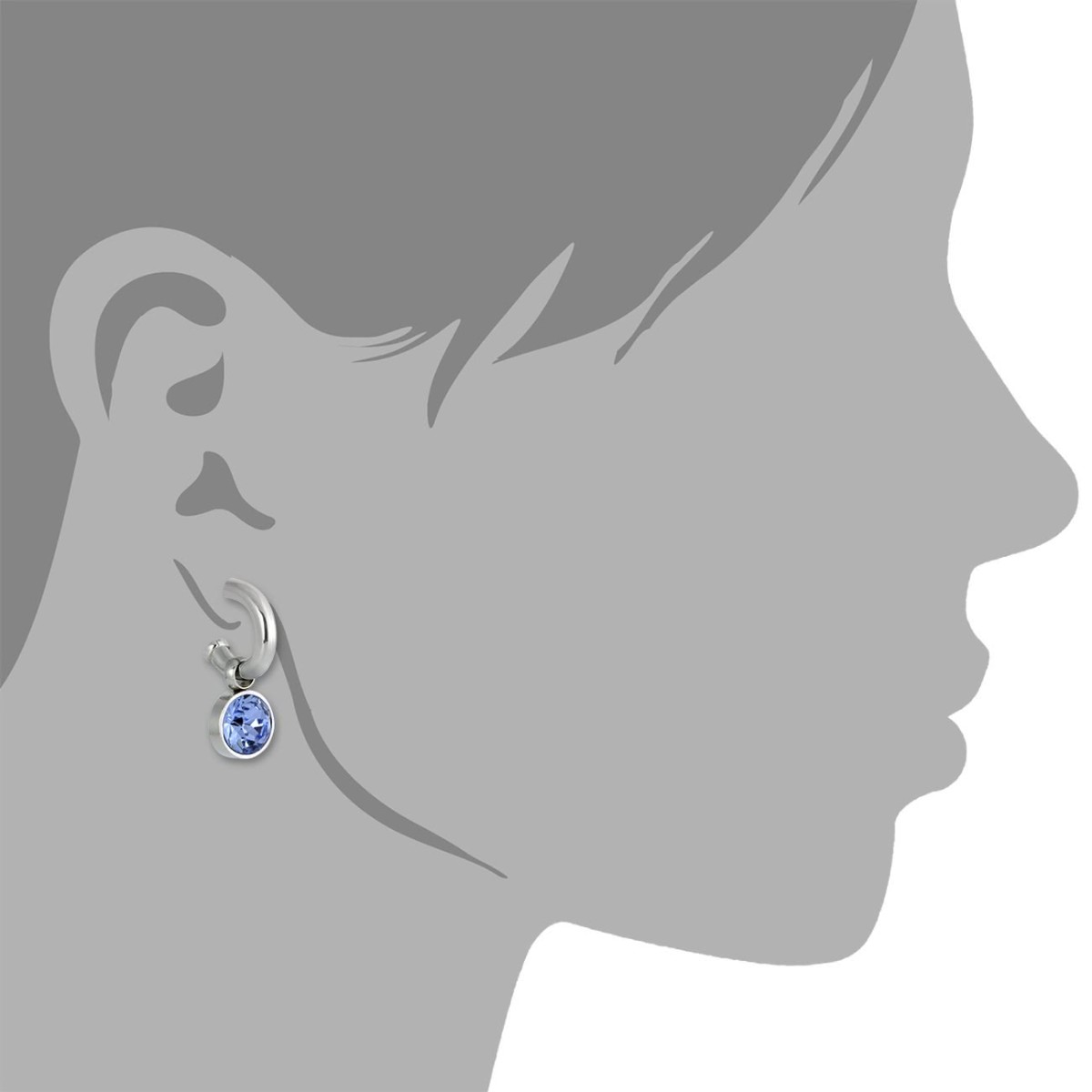 Ein Paar Edelstahl Creolen mit einem hängenden hellblauen Zirkonias Stein für die modische, trendbewußte Frau. Die stylischen Ohrringe aus der Amello Edelstahl Kollektion glitzern und funkeln in der Farbe hellblau.