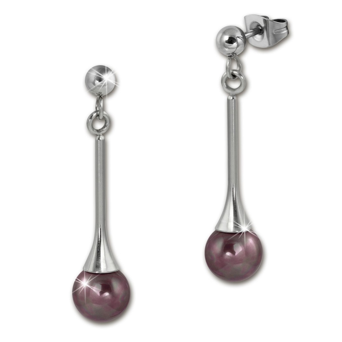 Ein Paar Ohrhänger Kugel braun glanz für die modische, trendbewusste Frau. Die stylischen Ohrringe aus der Amello Edelstahl Kollektion sind ein absoluter Hingucker.