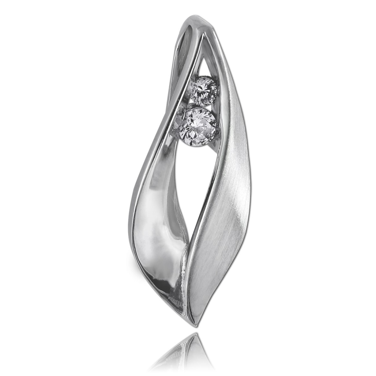 Anhänger Blatt aus 925er Sterling Silber mit mattierter und glänzender Oberfläche. Die 2 funkelnden Zirkonias machen diesen Kettenanhänger zu einem echten Eyecatcher.