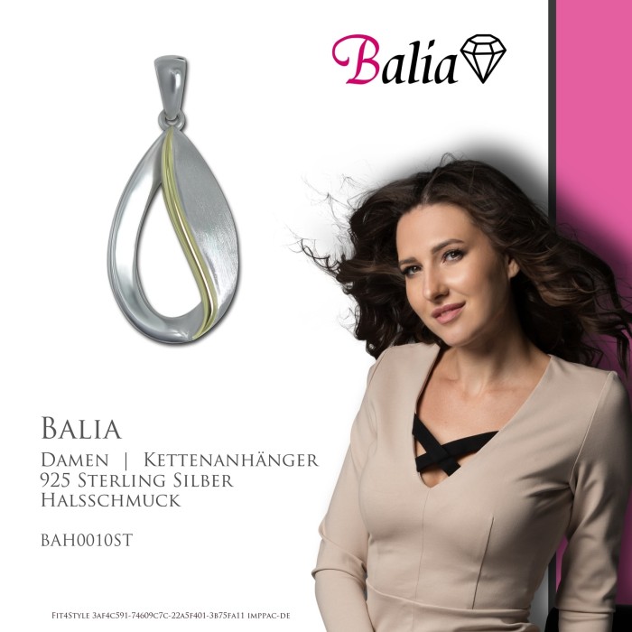 BALIA steht für exquisite Schmuckstücke, welche durch ihr Design und ihre qualitative Verarbeitung beeindrucken. BALIA verarbeitet nur hochwertige Edelmetalle, wie Gold und Silber zu hochwertigem Echtschmuck.