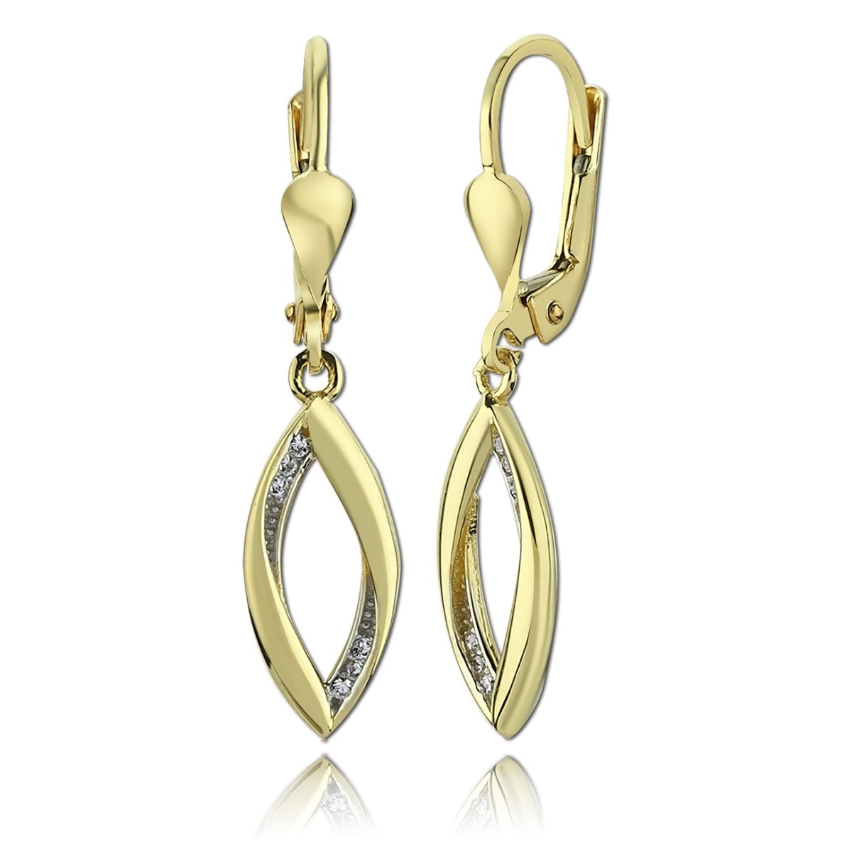 Elegante Ohrhänger aus hochwertigem 333er Gelbgold gefertigt. Die Ohrringe in offener Blatt-Form sind teilweise mit funkelnden Zirkonia besetzt.