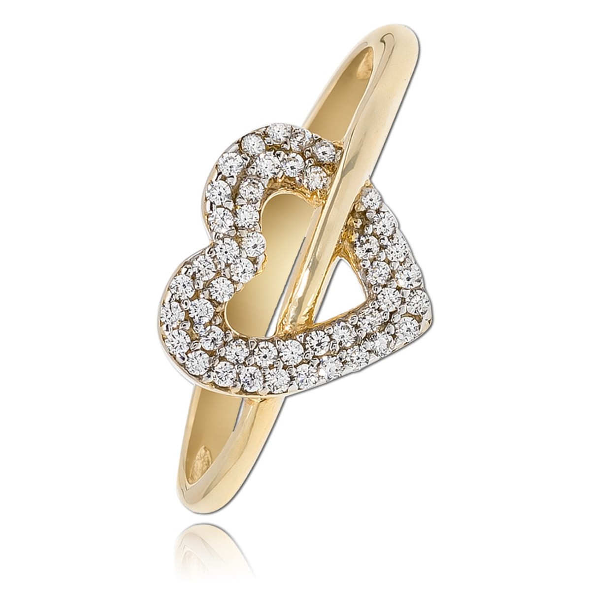 Eleganter Ring aus hochwertigem 333er Gelbgold gefertigt. Auf der Ringschiene ist ein offenes Herz angebracht, welches mit Zirkoniasteinen besetzt ist. Der Ring hat eine Größe von 56 (17,8).