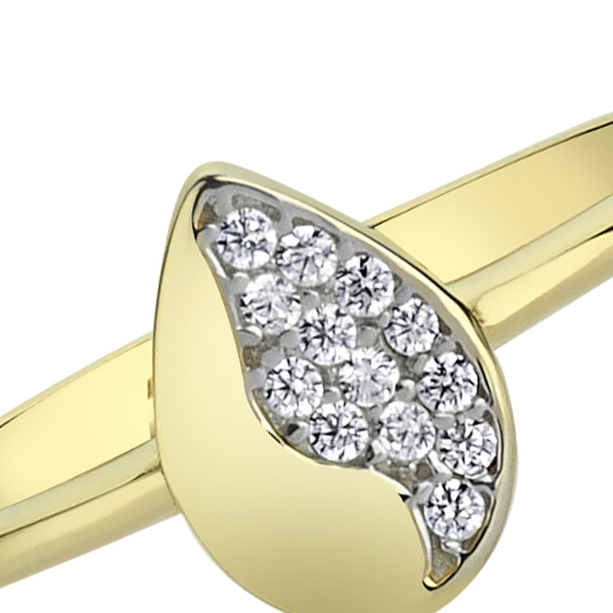 Eleganter Ring aus hochwertigem 333er Gelbgold gefertigt. Auf der Ringschiene ist ein Blattmotiv angebracht, welcher hälftig mit funkelnden Zirkonia besetzt ist. Der Ring hat eine Größe von 54 (17,2).
