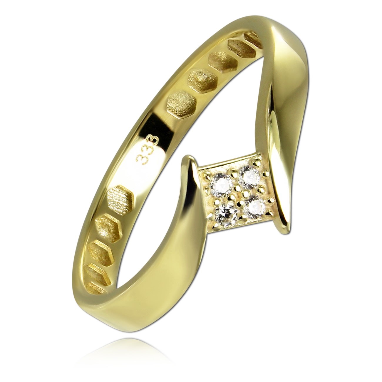 Eleganter Ring aus hochwertigem 333er Gelbgold gefertigt. Auf der Ringschiene ist eine Viereck angebracht, welche mit Zirkoniasteinen besetzt ist. Der Ring hat eine Größe von 54 (17,2).