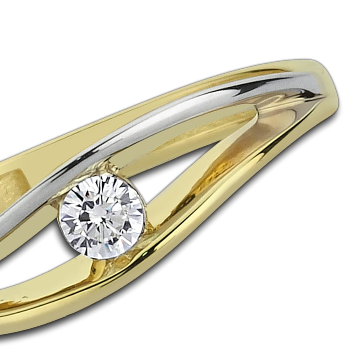 Eleganter Ring aus hochwertigem 333er Gelbgold gefertigt. Der Ring wird durch einen funkelnden Zirkonia, welcher in der geöffneten Ringschiene angebracht ist, zu einem echten Eyecatcher. Der Ring hat eine Größe von 58 (18,5).