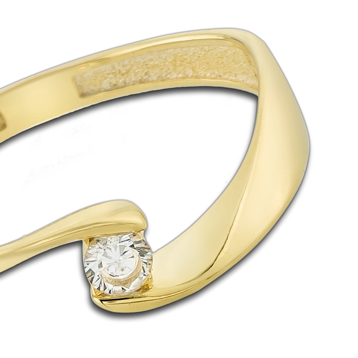 Ein moderner Ring aus hochwertigem 333er Gelbgold gefertigt. Auf der welligen Ringschiene funkelt 1 Zirkonias-Stein. Der Ring hat eine Größe von 58 (18,5).