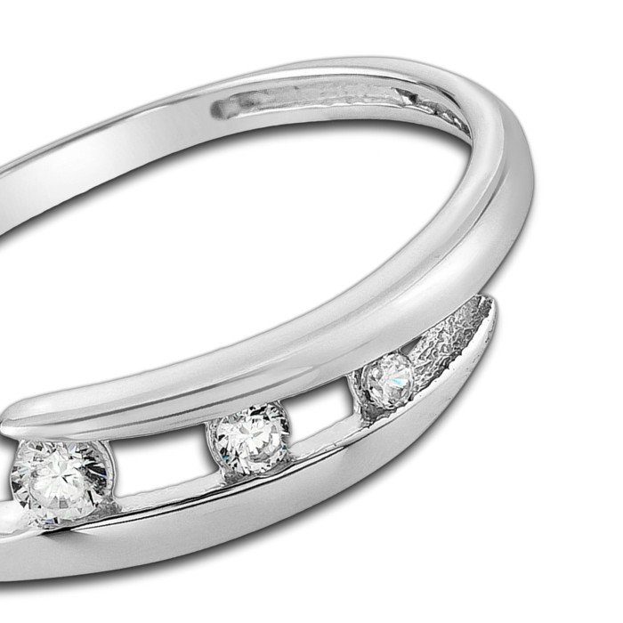 Ein moderner Ring aus hochwertigem 333er Weißgold gefertigt. Auf der Ringschiene funkeln 3 Zirkonias-Steine. Der Ring hat eine Größe von 54 (17,2).