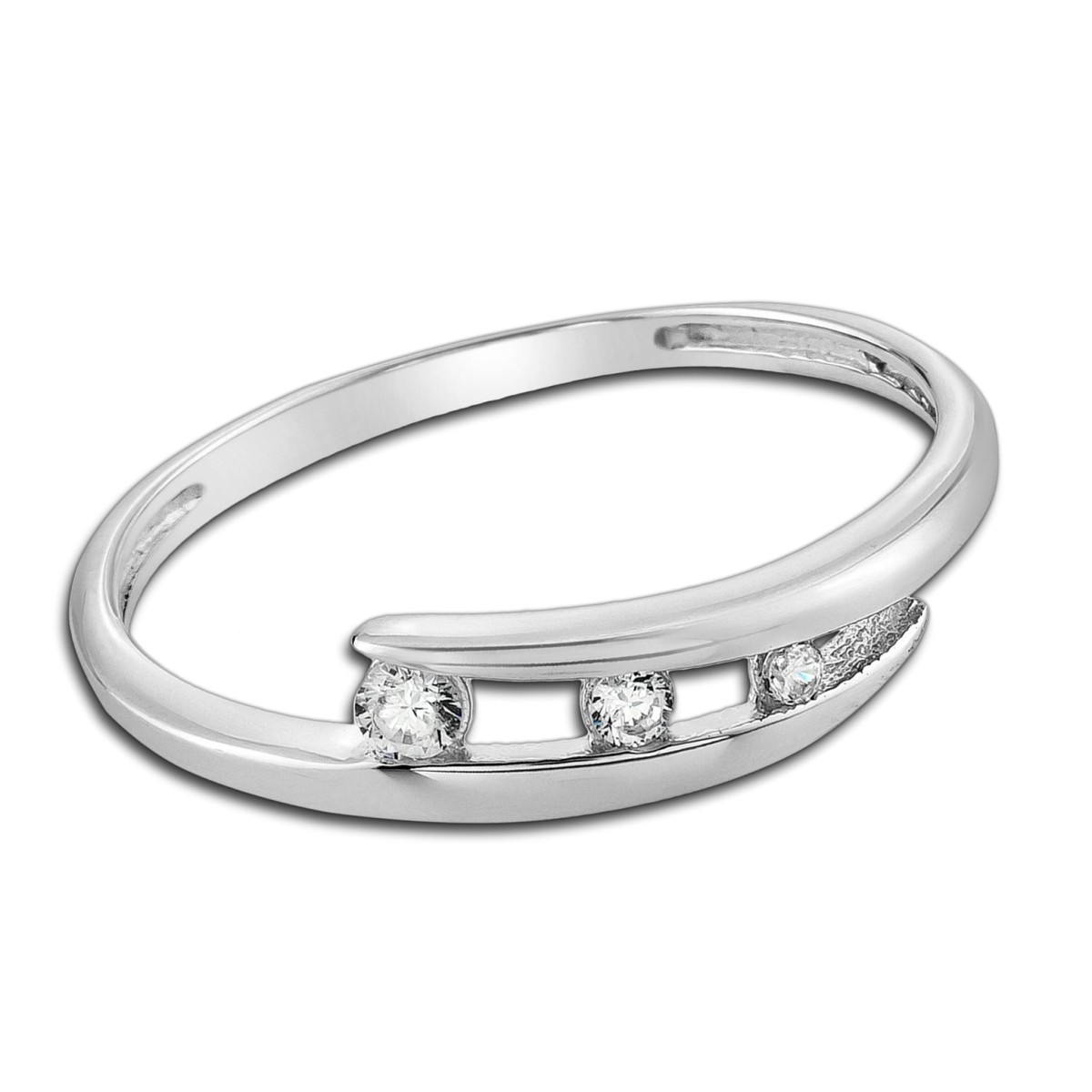 Ein moderner Ring aus hochwertigem 333er Weißgold gefertigt. Auf der Ringschiene funkeln 3 Zirkonias-Steine. Der Ring hat eine Größe von 56 (17,8).