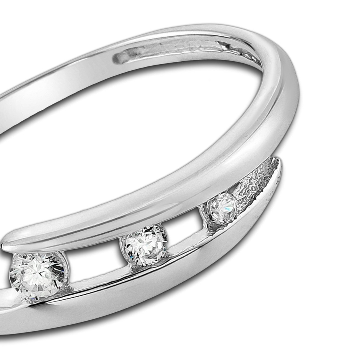 Ein moderner Ring aus hochwertigem 333er Weißgold gefertigt. Auf der Ringschiene funkeln 3 Zirkonias-Steine. Der Ring hat eine Größe von 60 (19,1).