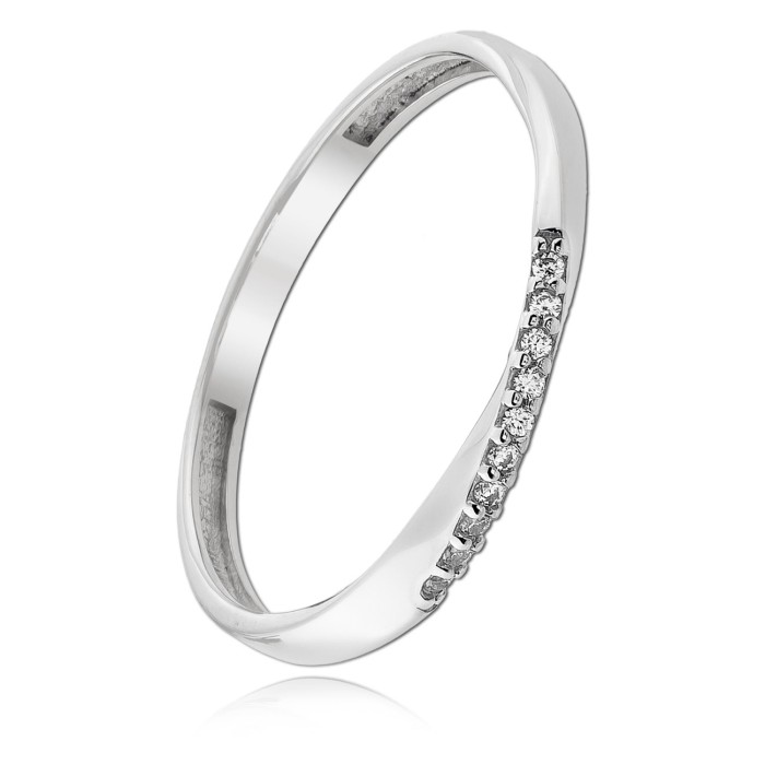 Moderner Ring Swing aus 333er Weißgold gefertigt. Die Ringschiene ist mit vielen kleinen weißen Zirkonias besetzt. Der Ring hat eine Größe von 54 (17,2).