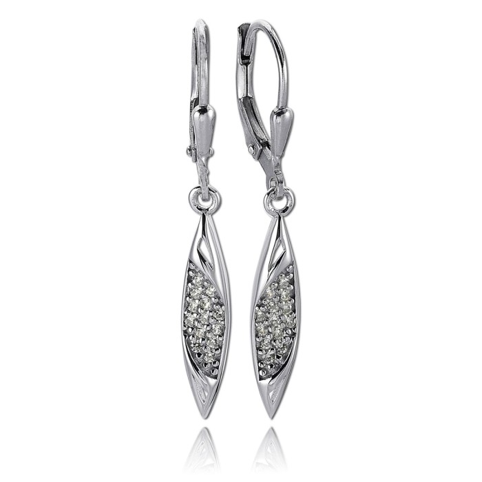 Elegante Damenohrringe aus 925er Sterling Silber mit polierter Oberfläche. Die Ohrhänger haben eine ovale Surfbrettform. Die funkelnden Zirkonia vollenden die Eleganz der Ohrringe.