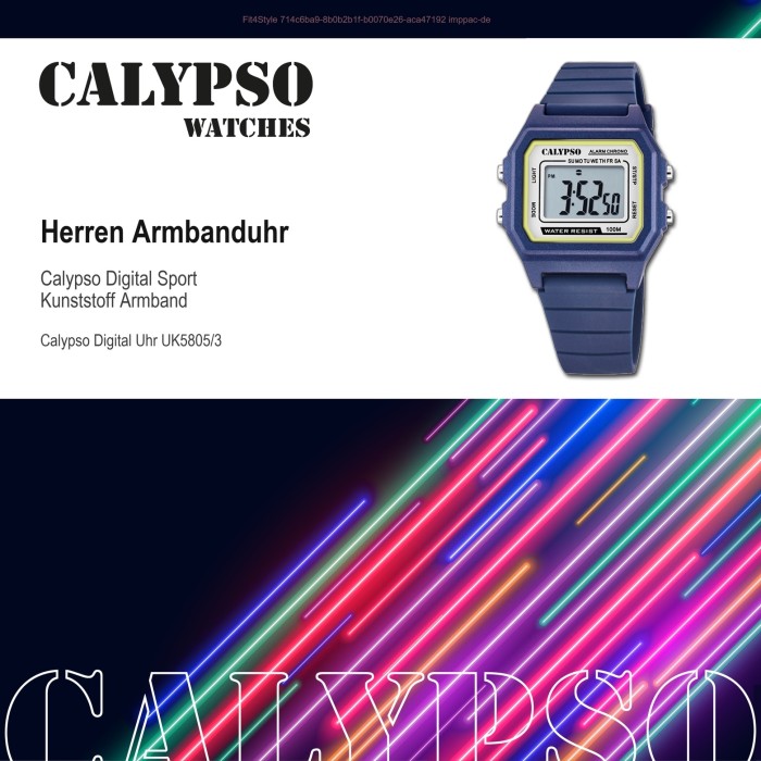 - Schlüsselworte: Herrenuhren, Digitaluhren, Quarzuhren, Kunststoff, Calypso, Armbanduhren