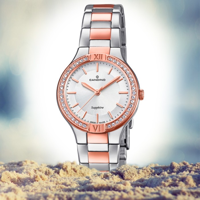 Diese Fashion Uhr für Damen aus der exklusiven Candino Casual-Kollektion kommt mit einem hochwertigen Edelstahl-Armband in silber und kupfer und roségold. Die Analoguhr zeichnet sich besonders durch ein höchst präzises Quarzwerk aus und ist bis 5 bar wasserdicht.- besondere Eigenschaften