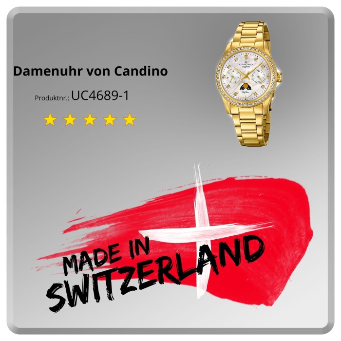 Candino Armbanduhren sind für Damen und Herren mit hohen Ansprüchen an Qualität und Design. Das Swiss Made Siegel garantiert Ihnen hervorragende Schweizer Qualität und die Verarbeitung edler Materialien wie Echtleder und Edelstahl. Die Uhrenmarke bietet ein breites Spektrum an Armbanduhren mit Quarz- und Automatikuhrwerken, welches von eleganten, klassischen Stilen bis hin zu sportlichen Modellen reicht.