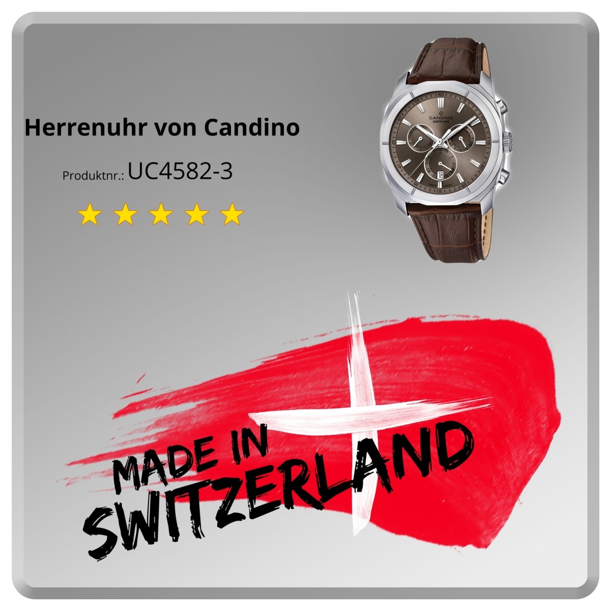 - Schlüsselworte: Herrenuhren, Analoguhren, Quarzuhren, Candino, Leder, Armbanduhren