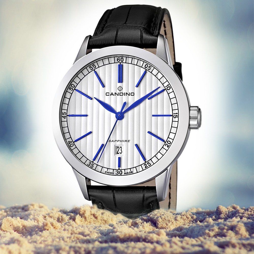 - Schlüsselworte: Herrenuhren, Analoguhren, Quarzuhren, Candino, Leder, Armbanduhren