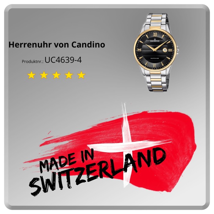 Candino Armbanduhren sind für Damen und Herren mit hohen Ansprüchen an Qualität und Design. Das Swiss Made Siegel garantiert Ihnen hervorragende Schweizer Qualität und die Verarbeitung edler Materialien wie Echtleder und Edelstahl. Die Uhrenmarke bietet ein breites Spektrum an Armbanduhren mit Quarz- und Automatikuhrwerken, welches von eleganten, klassischen Stilen bis hin zu sportlichen Modellen reicht.