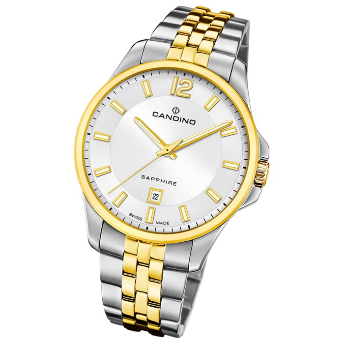 Diese einzigartige Uhr für Herren aus der aktuellen Candino Classic Kollektion garantiert hohen Tragekomfort durch das hochwertige Edelstahl-Armband in silber und gold. Die Armbanduhr mit analoger Anzeige und präzisem Armbanduhr ist ein zuverlässiger Begleiter in Alltag und Freizeit.Die -Candino Classic- Uhrenkollektion verkörpert zeitlose Eleganz und klare Formen. Mit Candino Classic setzen Sie auf Schweizer Uhrmacherkunst, die Tradition und Moderne perfekt vereint.
