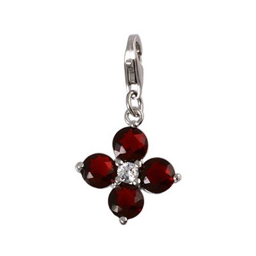 Carlo Biagi Charm Blume mit dunkelrotem Zirkonia Armband Anhänger 925 Silber