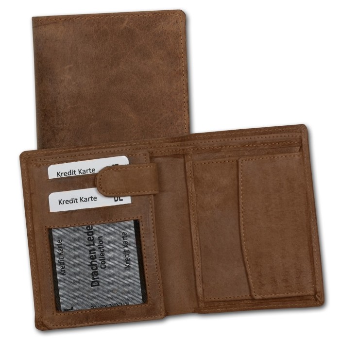 - Kurzbeschreibung: DrachenLeder Portemonnaie Antikleder braun Geldbörse OPS108N