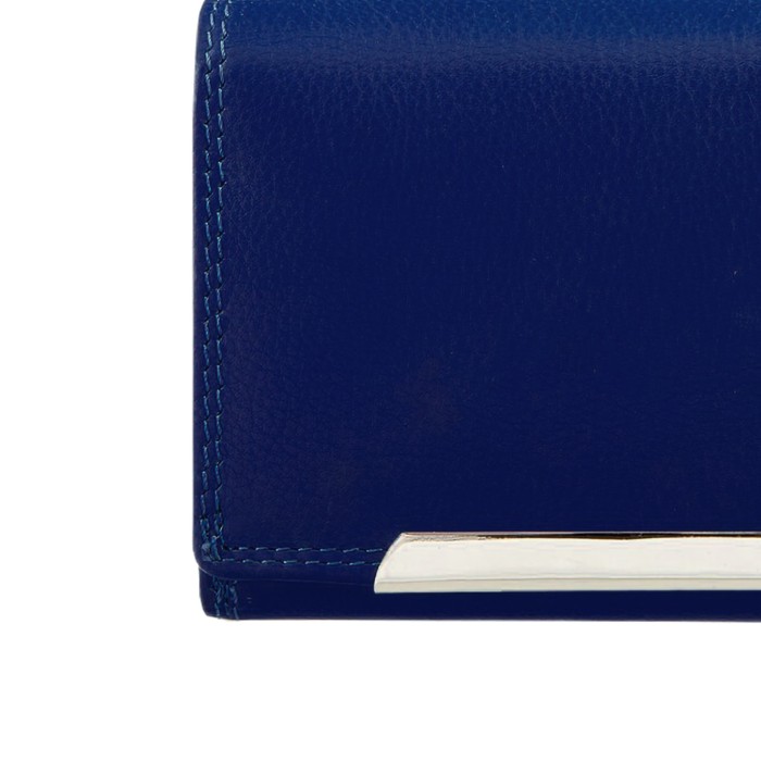 Elegante Echtleder Geldbörse in einem schönen royalblau mit Doppelnähten, einem Außenfach und im Querformat. Ebenfalls sind viele EC- und Kreditkartenfächer vorhanden.