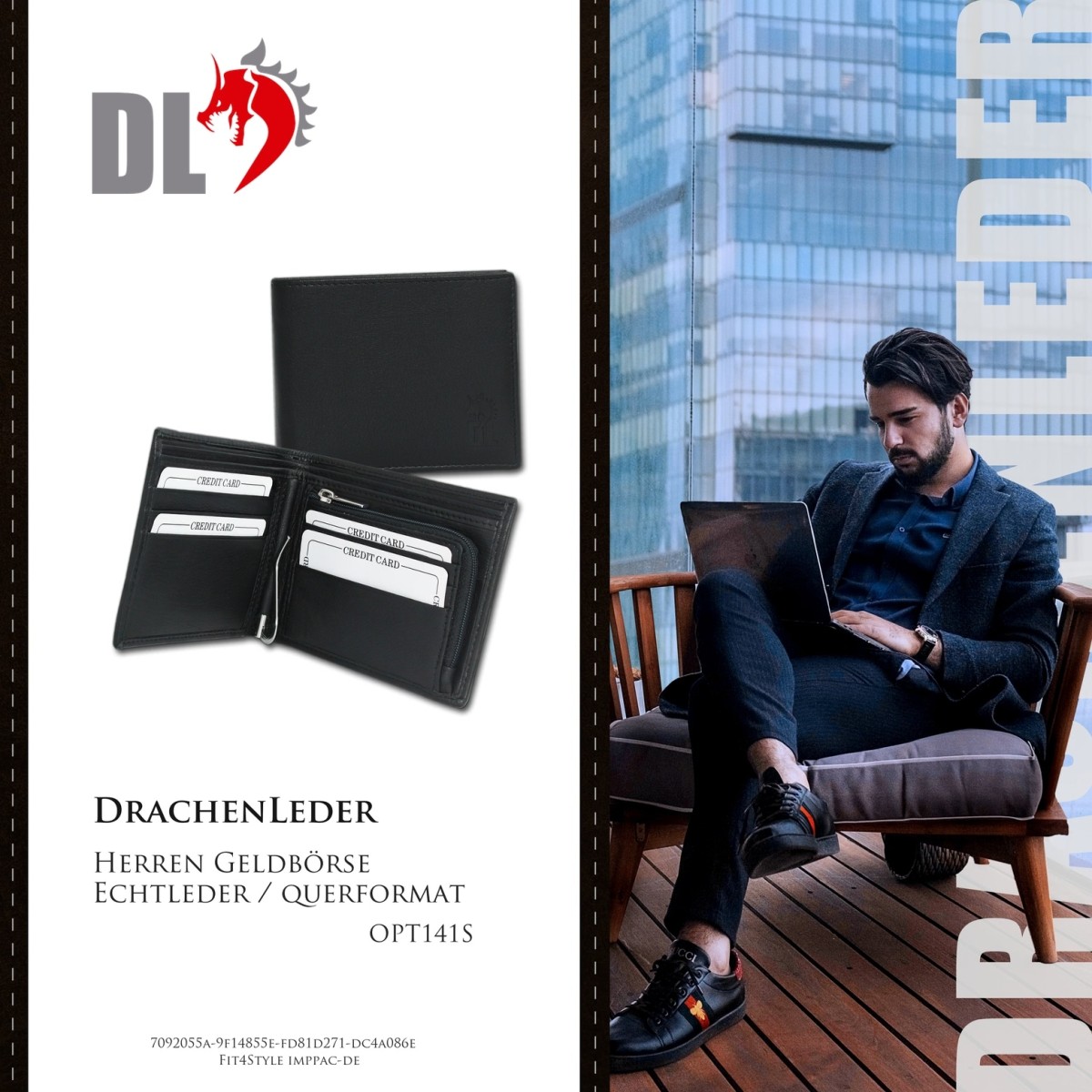 - Kurzbeschreibung: DrachenLeder Geldklammerbörse schwarz Echtleder Portemonnaie OPT141S