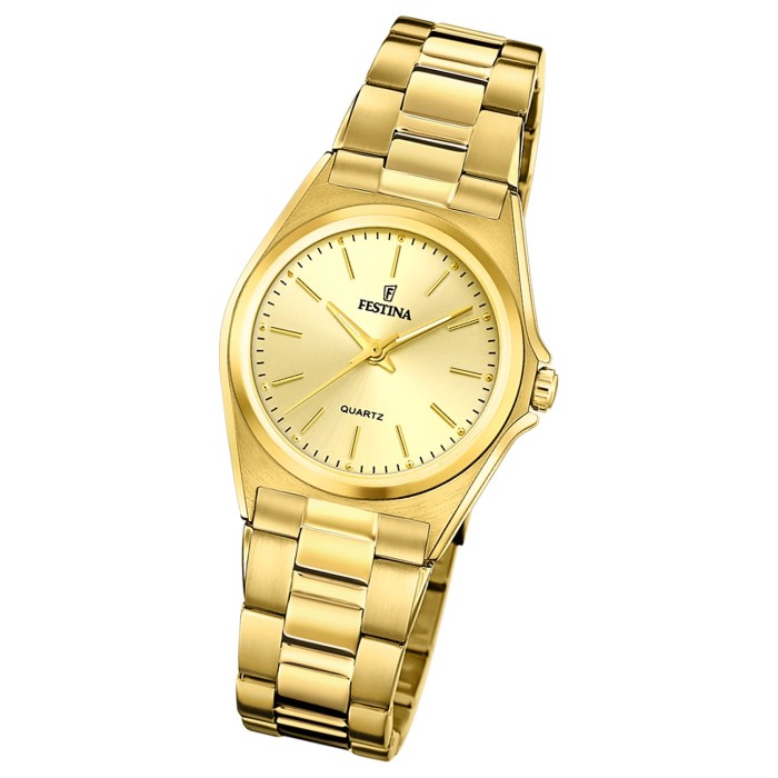 Diese einzigartige Uhr für Damen aus der aktuellen Klassik Kollektion garantiert hohen Tragekomfort durch das hochwertige Edelstahl-Armband in gold. Die Armbanduhr mit analoger Anzeige und präzisem Armbanduhr ist ein zuverlässiger Begleiter in Alltag und Freizeit.Festina, lat. -Beeil dich- seit über 100 Jahren ist dies auf Ziffernblättern zahlreicher Uhren zu finden. 1902 in der Schweiz gegründet, wurde Festina 1984 durch den Spanier Miguel Rodriguez übernommen und hat seitdem seinen Sitz in Spanien. Mit Modellen von Festina bekommen Sie Uhren in hervorragender Qualität zu fairen Preisen. Festina verwendet ausschließlich erstklassige japanische oder Schweizer Uhrwerke.