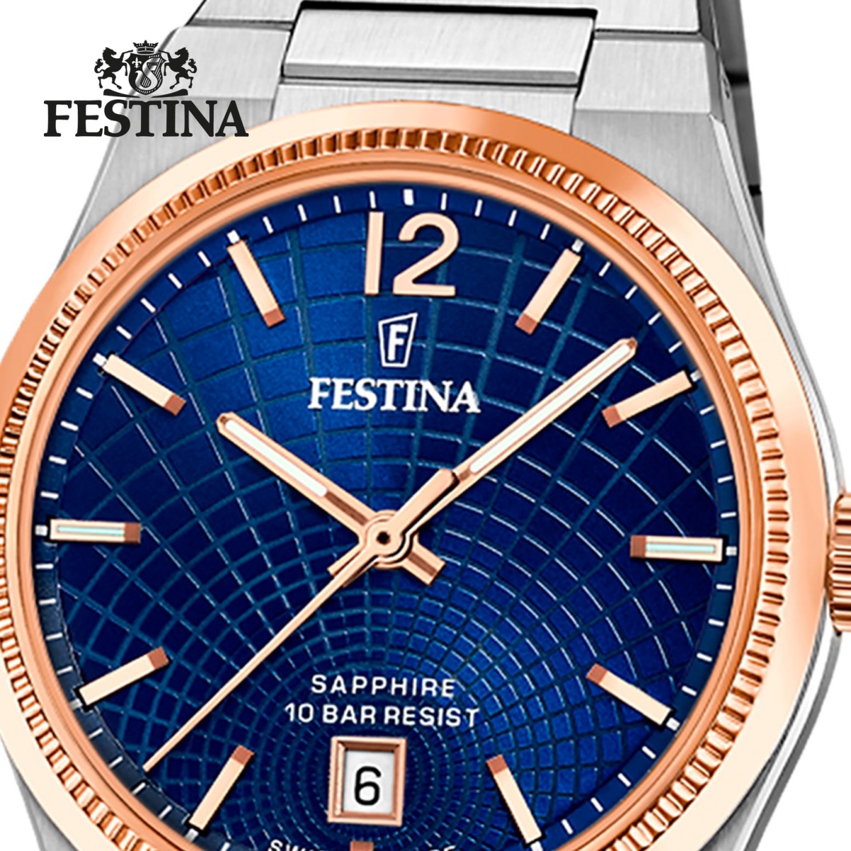 Festina, lat. -Beeil dich- seit über 100 Jahren ist dies auf Ziffernblättern zahlreicher Uhren zu finden. 1902 in der Schweiz gegründet, wurde Festina 1984 durch den Spanier Miguel Rodriguez übernommen und hat seitdem seinen Sitz in Spanien. Mit Modellen von Festina bekommen Sie Uhren in hervorragender Qualität zu fairen Preisen. Festina verwendet ausschließlich erstklassige japanische oder Schweizer Uhrwerke.