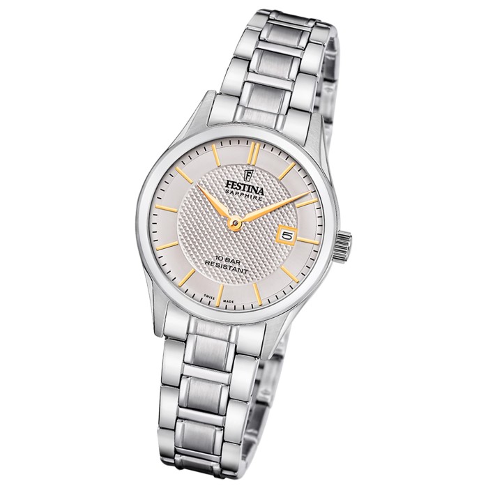 Festina Damenuhr Swiss Made Armbanduhr Edelstahl silber UF20068/4