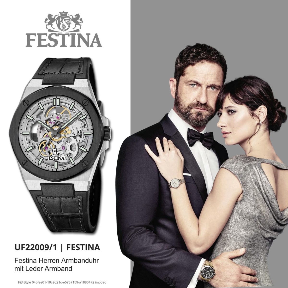 - Kurzbeschreibung: Festina Herrenuhr Automatik Armbanduhr Leder schwarz UF22009/1