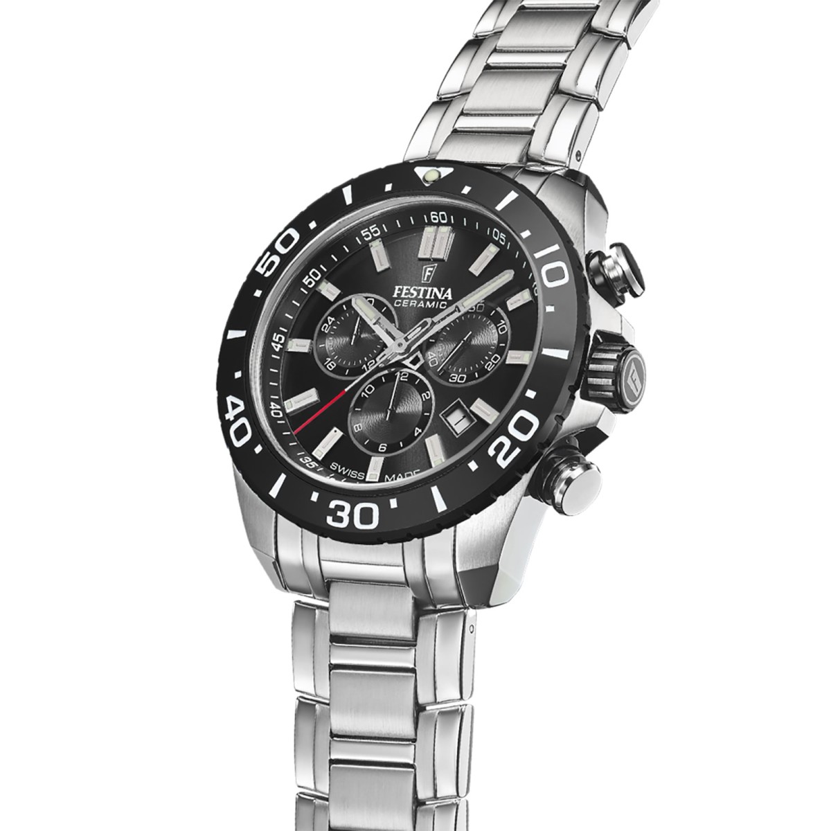 Diese einzigartige Uhr für Herren aus der aktuellen Festina Swiss made Kollektion garantiert hohen Tragekomfort durch das hochwertige Edelstahl-Armband in silber. Der Chronograph und präzisem Armbanduhr ist ein zuverlässiger Begleiter in Alltag und Freizeit.- besondere Eigenschaften