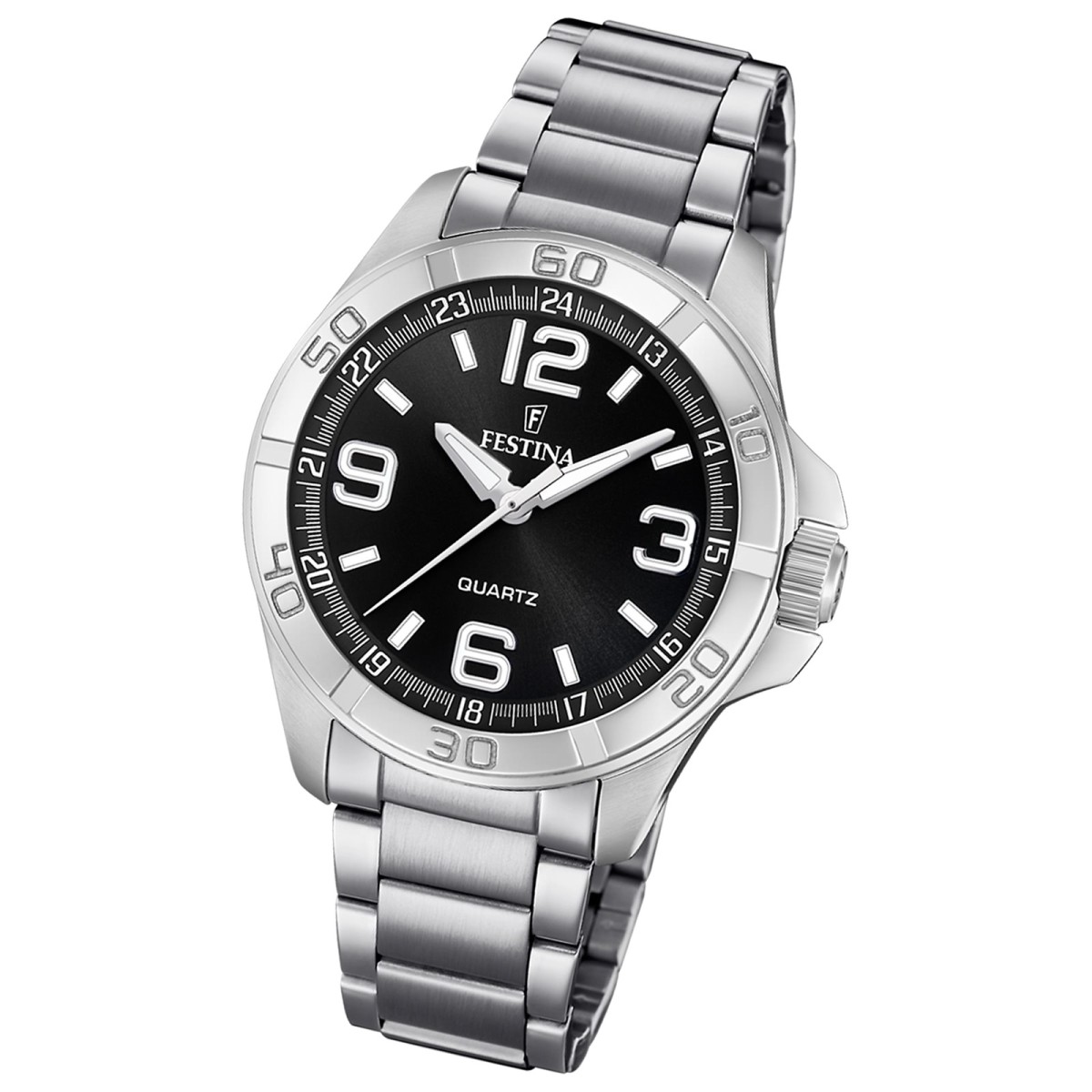 Diese einzigartige Uhr für Herren aus der aktuellen Klassik Kollektion garantiert hohen Tragekomfort durch das hochwertige Edelstahl-Armband in silber. Die Armbanduhr mit analoger Anzeige und präzisem Armbanduhr ist ein zuverlässiger Begleiter in Alltag und Freizeit.Die Festina ?Klassik? Uhrenkollektion bietet zeitlos elegante Uhren für Damen und Herren. Sie zeichnen sich durch schlichtes Design, gute Lesbarkeit und eine raffinierte Ästhetik aus.