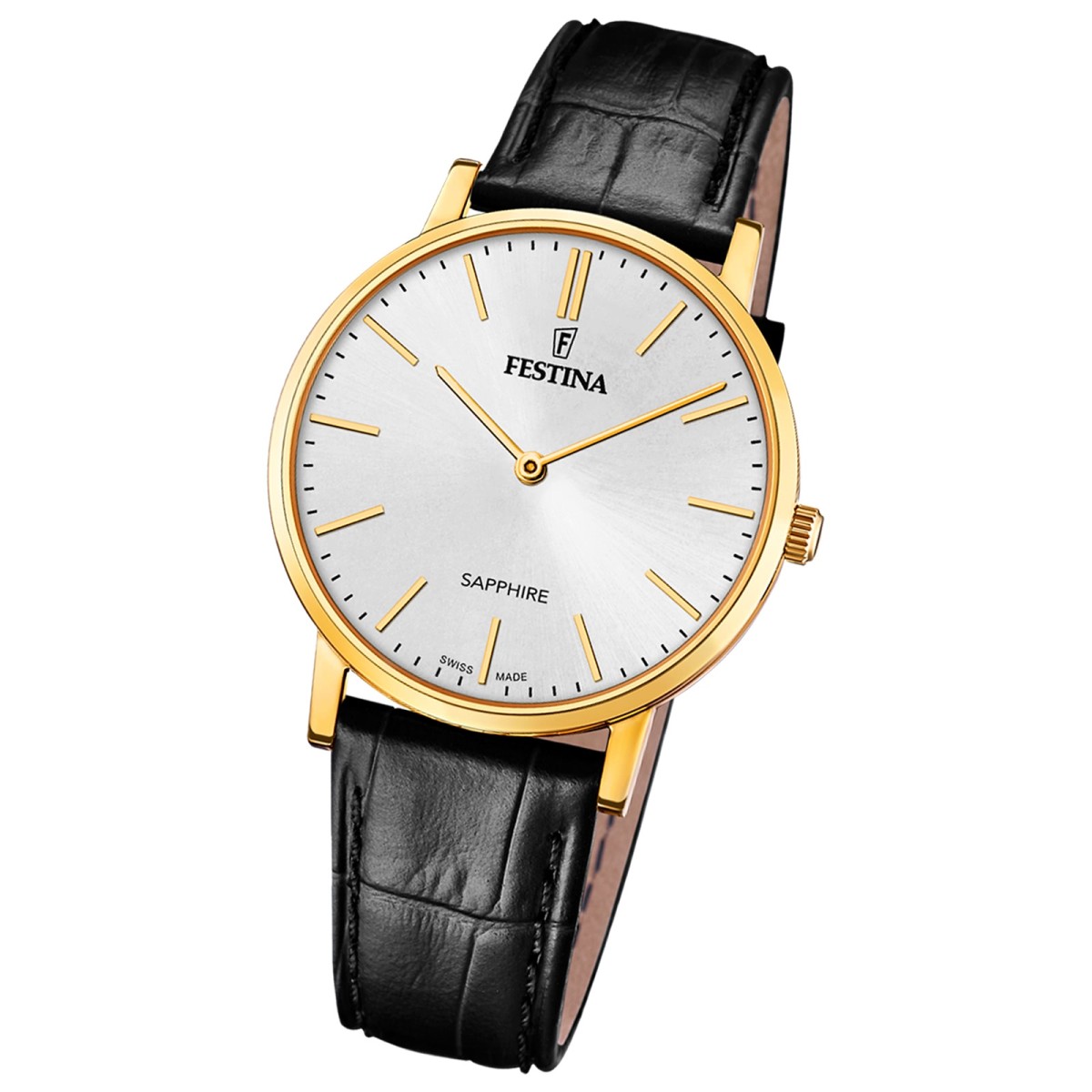 Festina Herrenuhr Leder schwarz Festina Swiss Made Armbanduhr UF20016/1