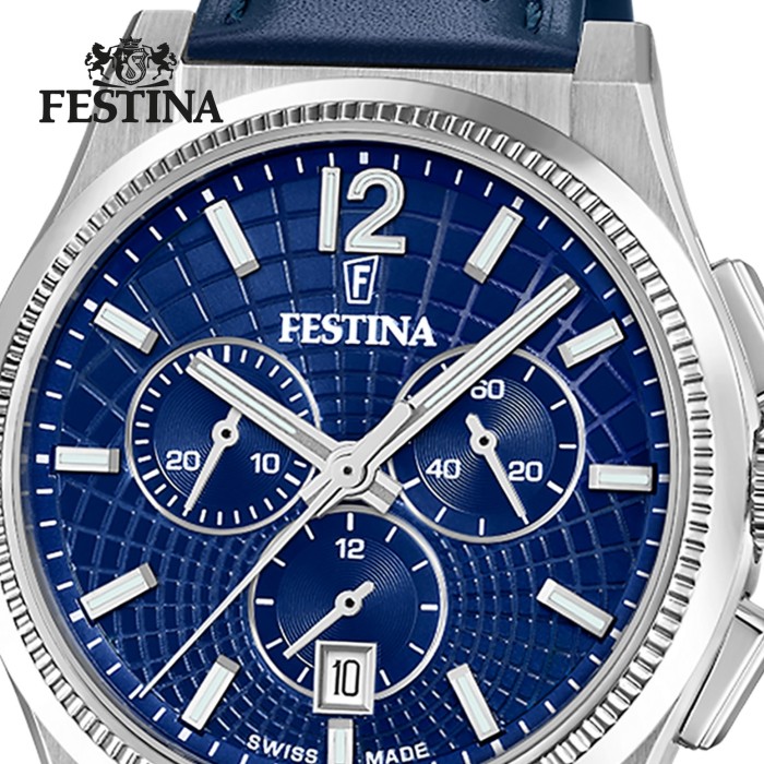 Festina Herrenuhr Swiss Made Armbanduhr Leder blau UF20060/2