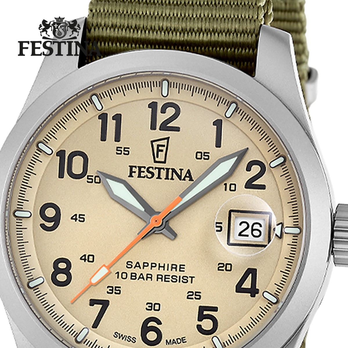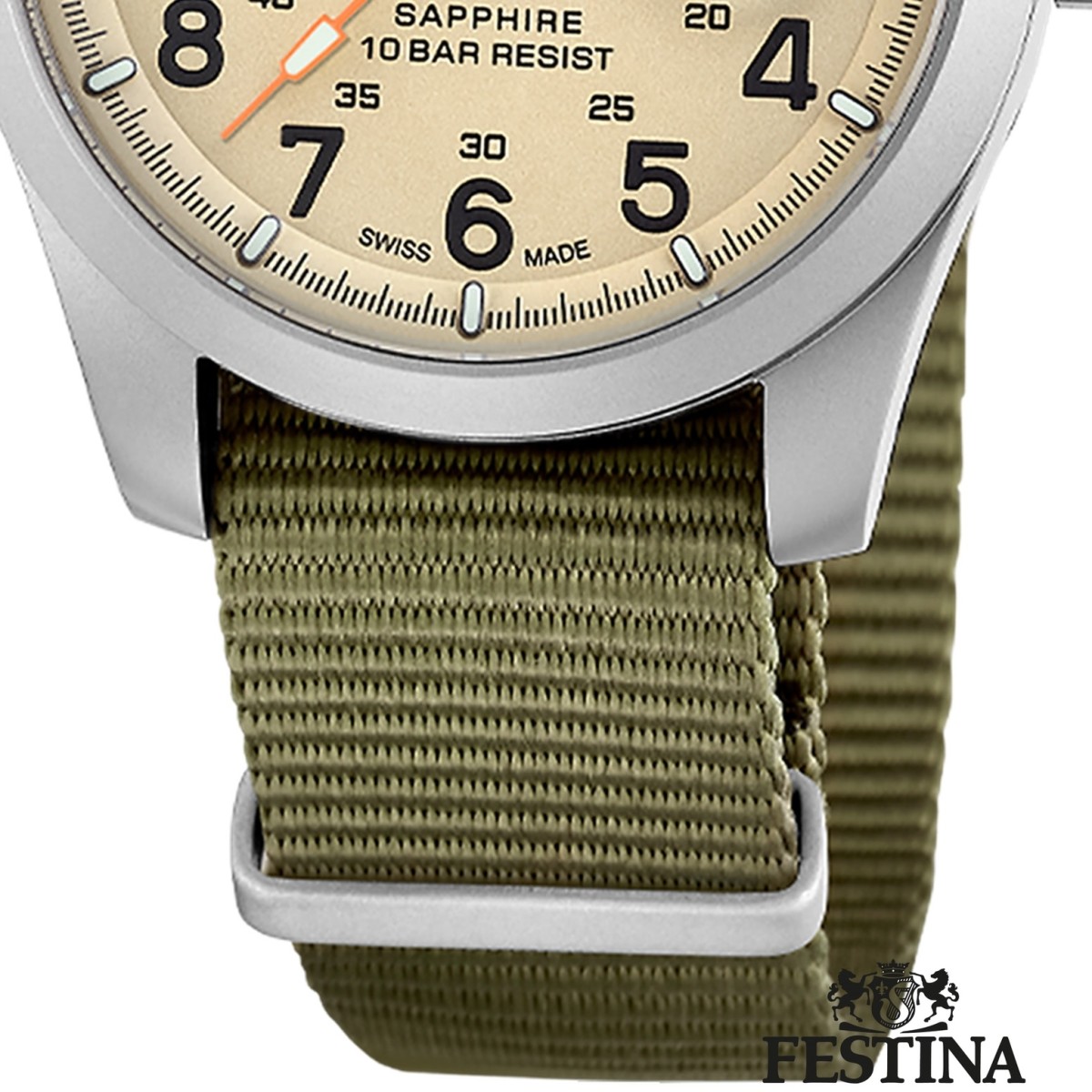 - Kurzbeschreibung: Festina Herrenuhr Swiss Made Armbanduhr Textil grün UF20082/1