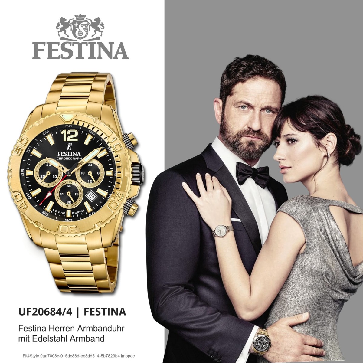 - Kurzbeschreibung: Festina Herrenuhr Timeless Chronograph Armbanduhr Edelstahl gold UF20684/4