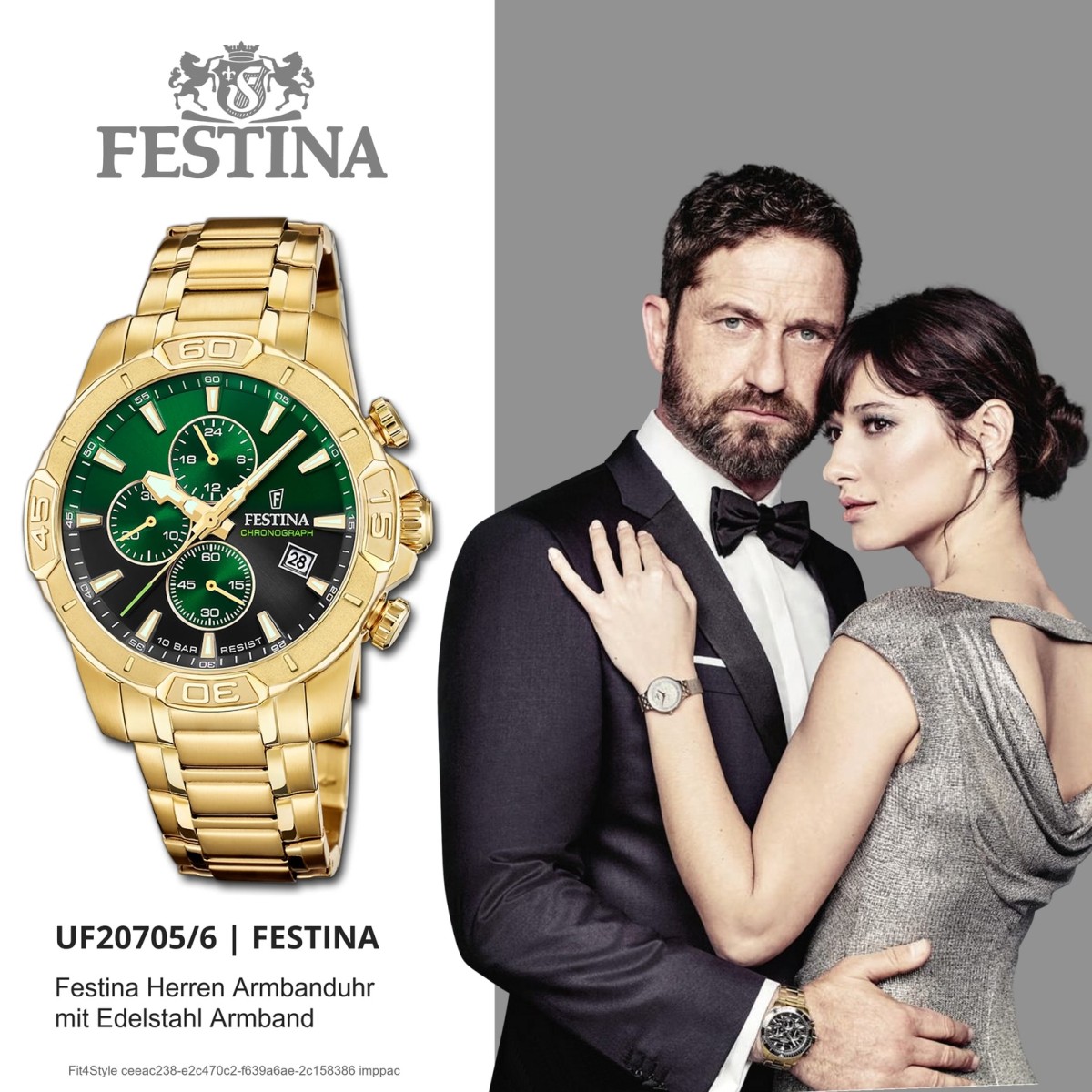 - Kurzbeschreibung: Festina Herrenuhr Timeless Chronograph Armbanduhr Edelstahl gold UF20705/6