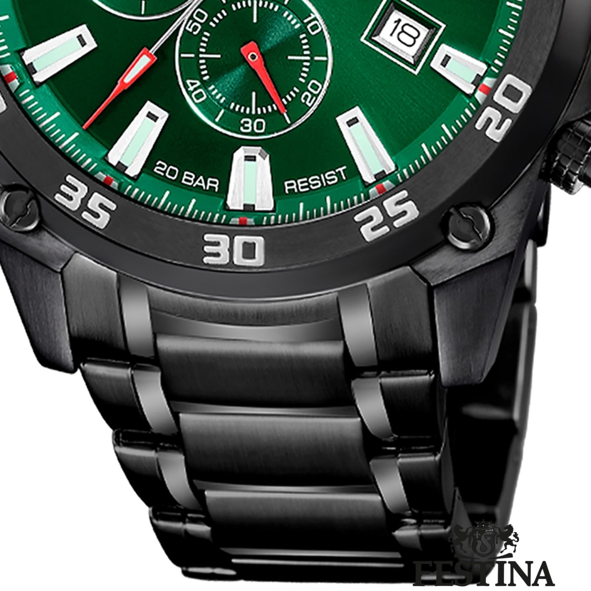 Festina Herrenuhr Timeless Chronograph Armbanduhr Edelstahl schwarz UF20735/2