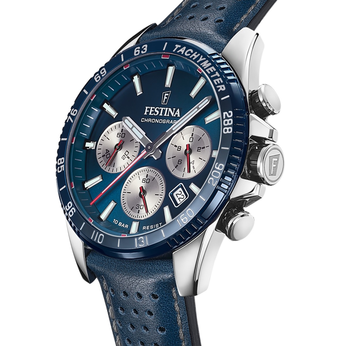 Festina Herrenuhr Timeless Chronograph Armbanduhr Leder dunkelblau UF20561/2