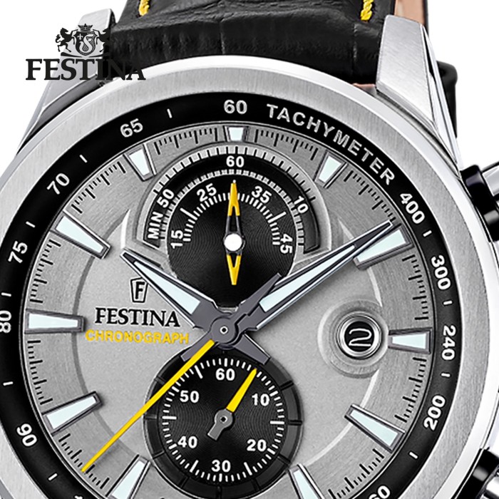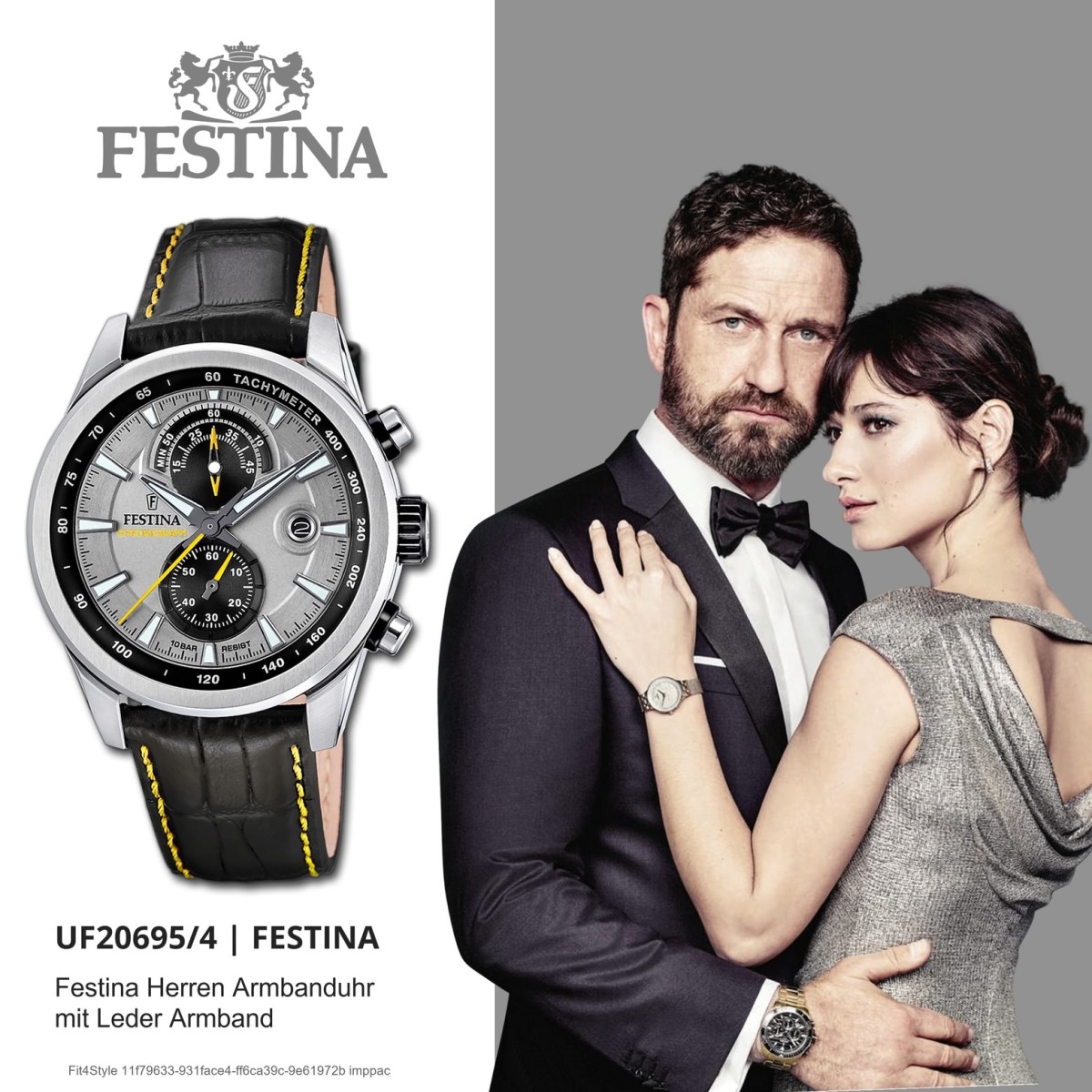 - Kurzbeschreibung: Festina Herrenuhr Timeless Chronograph Armbanduhr Leder schwarz gelb UF20695/4