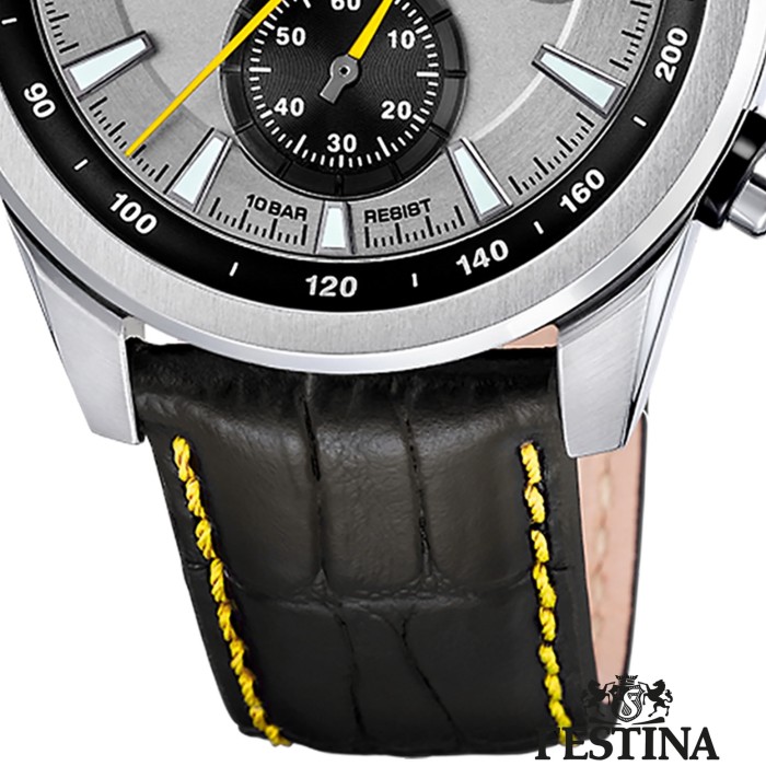 Festina Herrenuhr Timeless Chronograph Armbanduhr Leder schwarz gelb UF20695/4