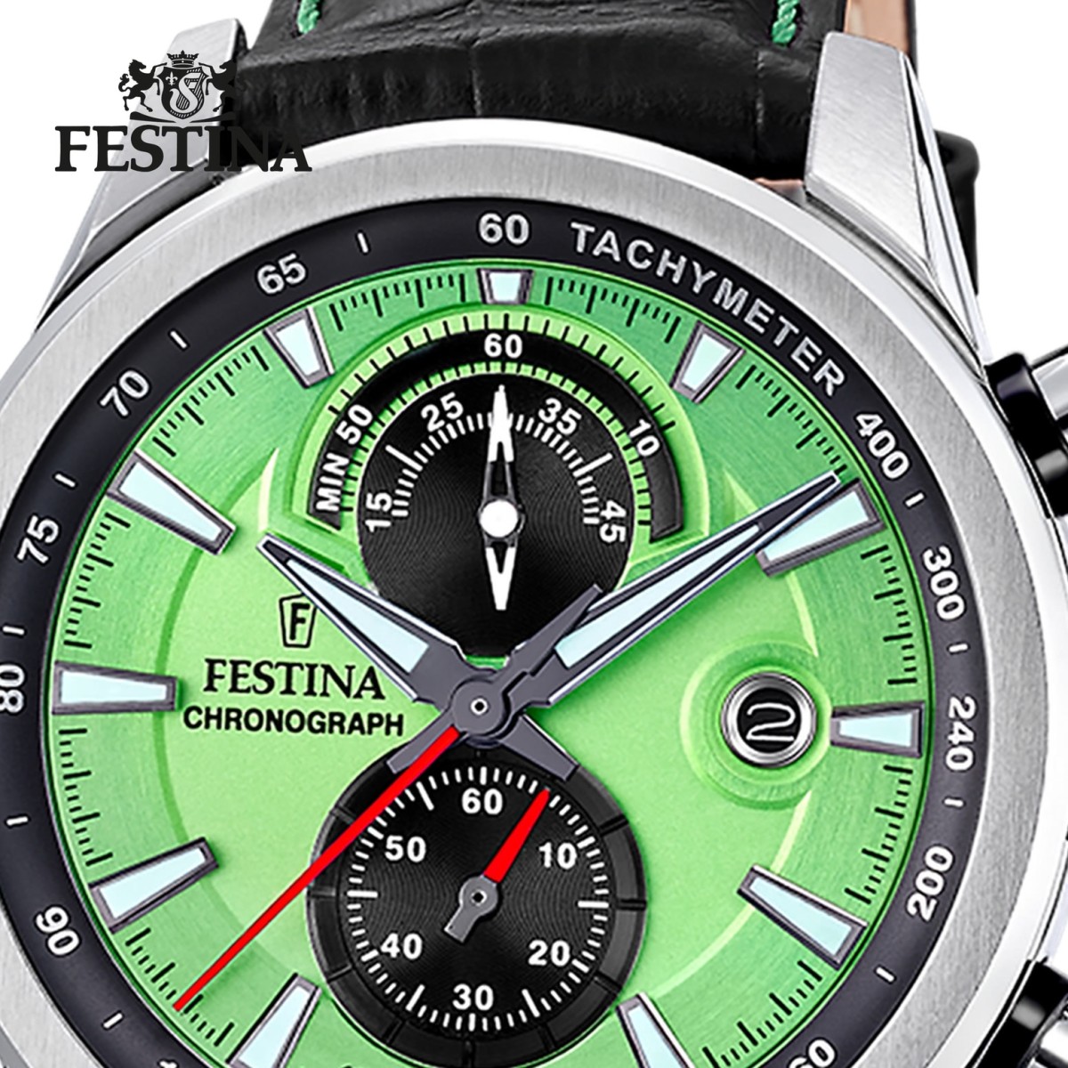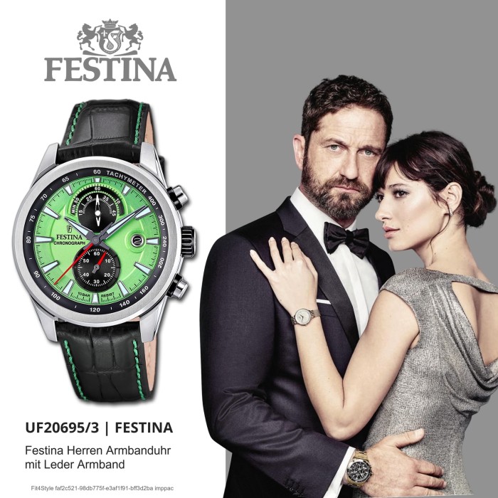 - Kurzbeschreibung: Festina Herrenuhr Timeless Chronograph Armbanduhr Leder schwarz grün UF20695/3