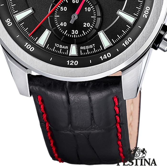 - Kurzbeschreibung: Festina Herrenuhr Timeless Chronograph Armbanduhr Leder schwarz rot UF20695/6