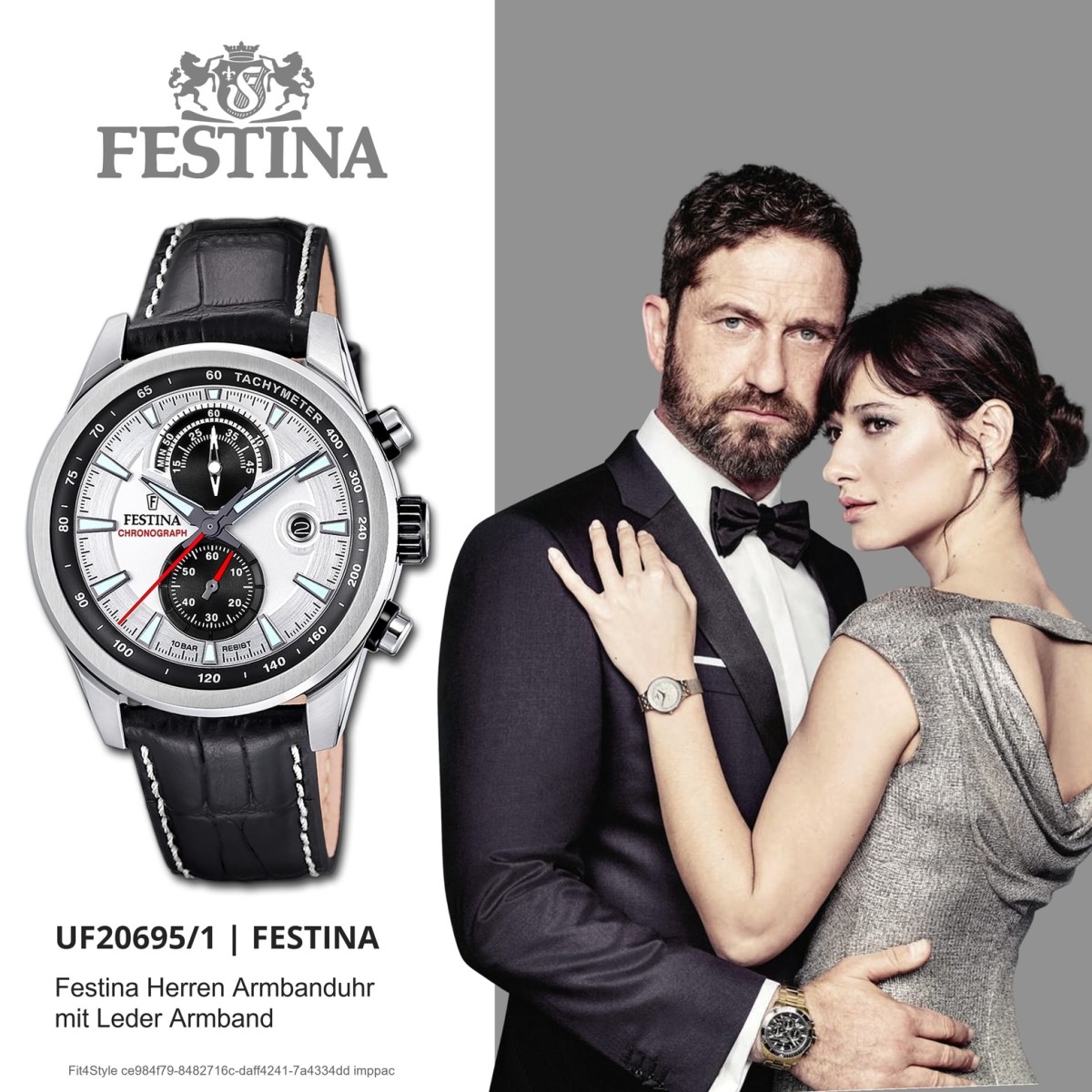 - Kurzbeschreibung: Festina Herrenuhr Timeless Chronograph Armbanduhr Leder schwarz weiß UF20695/1