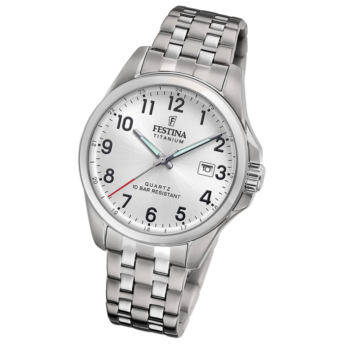 Diese einzigartige Uhr für Herren aus der aktuellen Titanium Kollektion garantiert hohen Tragekomfort durch das hochwertige Titan-Armband in Edelstahl. Die Armbanduhr mit analoger Anzeige und präzisem Armbanduhr ist ein zuverlässiger Begleiter in Alltag und Freizeit.Die Festina ?Titanium? Kollektion umfasst elegante und funktionale Zeitmesser für Damen und Herren. Durch die Verwendung von hochwertigem Titan ist sie extrem leicht, robust, korrosionsbeständig und zudem hypoallergen.