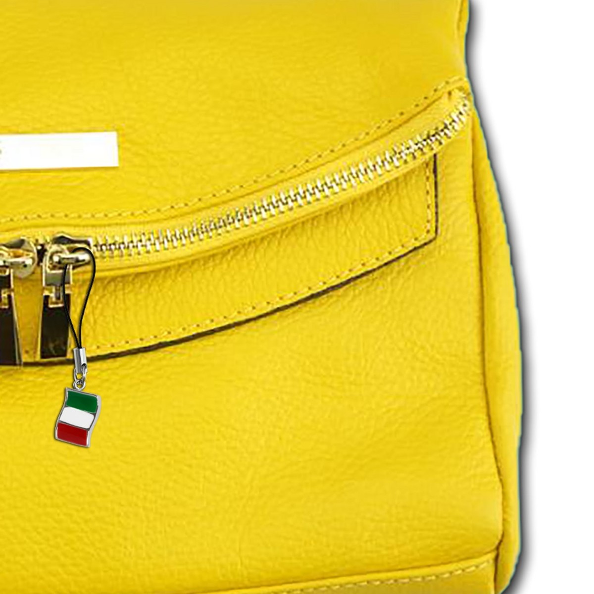 Eine aus weichem Rindsleder in Handarbeit gefertigte Tasche mit abnehm- und verstellbarem Schulterriemen - Made in Italy. Wandelbar von einer Clutch/Abendtasche in eine kleine Umhängetasche. Im Lieferumfang enthalten ist ein kleiner Italienflaggen-Anhänger, der am Produkt oder auch als Handyanhänger getragen werden kann.- besondere Eigenschaften
