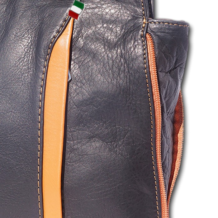 Moderne, multifunktionale Kombination aus Schultertasche und Damen-Rucksack handgefertigt aus echtem Leder - Made in Italy. Durch verschieben der Trageriemen erhalten Sie eine Umhängetasche oder einen Cityrucksack. An den Seiten sind zwei Reißverschlüsse, die zur Erweiterung des Fassungsvermögen dienen. Außerdem sind aus der vorderen Seite der Tasche zwei verdeckte Fächer mit Reißverschlüssen und hinten auch ein Fach mit Reißverschluss. Egal, ob Handtasche oder Rucksack, sie haben beides in einem!- besondere Eigenschaften