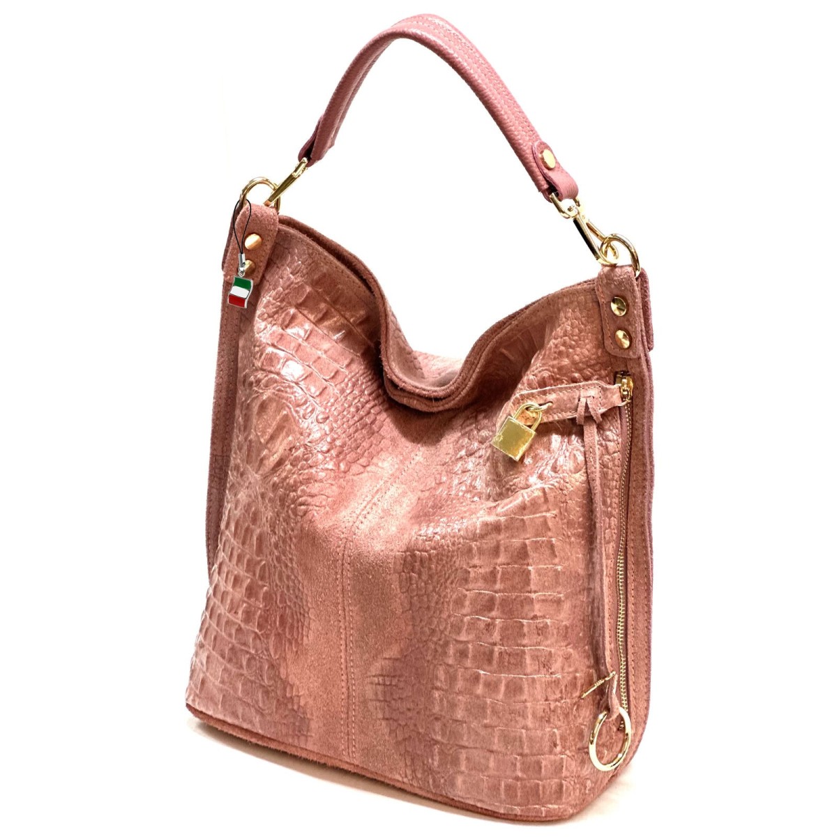 Beuteltasche Leder rosa, geprägt Damen Hobo Bag Tasche - Florence